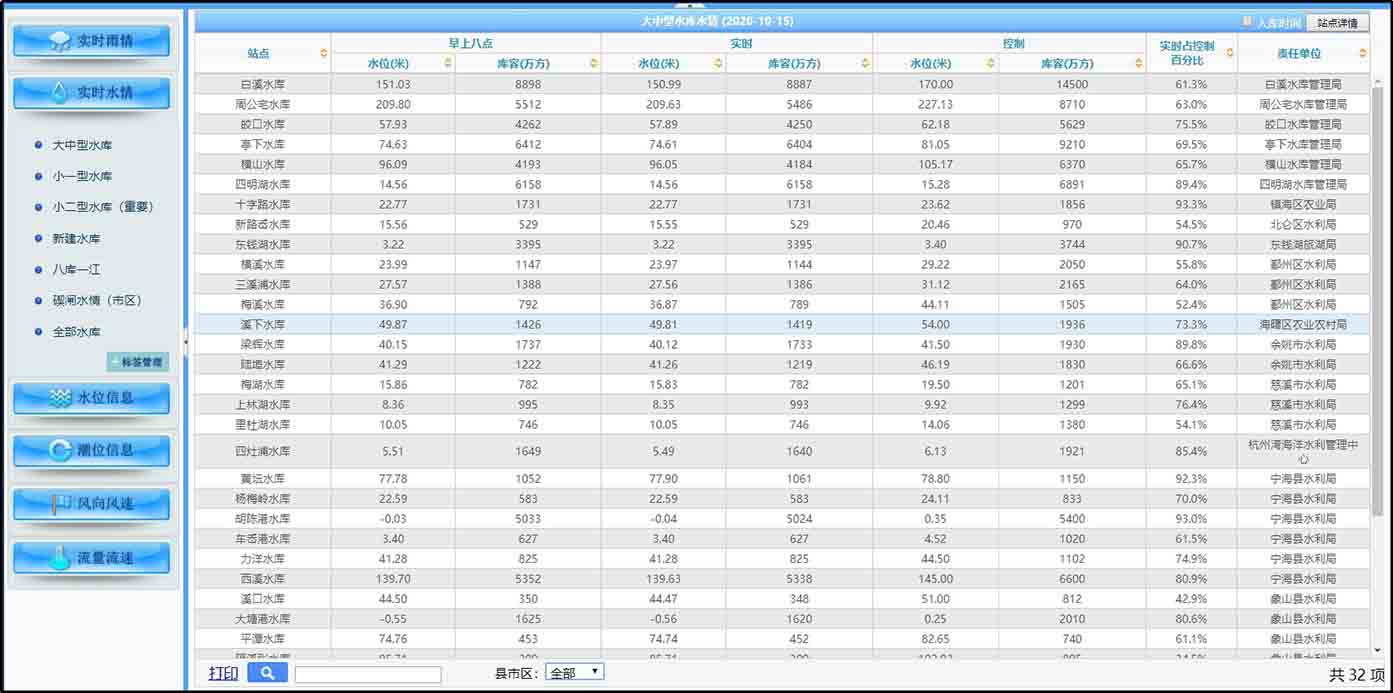 系統(tǒng)采用HTML5web技術(shù),提供各類水情、雨情、潮位、流量監(jiān)測、風(fēng)向風(fēng)速等信息的發(fā)布、查詢、統(tǒng)計管理。