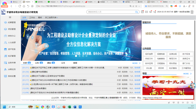 從2002年探索建設(shè)流域數(shù)字化至今,寧波院業(yè)務(wù)的數(shù)字化已走過(guò)了20多年,2023年,以事業(yè)部制轉(zhuǎn)型為契機(jī),提出建設(shè)以O(shè)A辦公系統(tǒng)、業(yè)財(cái)一體化系統(tǒng)、知識(shí)庫(kù)系統(tǒng)為代表的管理工具,在業(yè)務(wù)數(shù)字化的基礎(chǔ)上,推動(dòng)企業(yè)管理的數(shù)字化轉(zhuǎn)型。